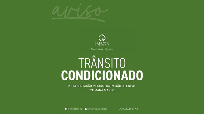 Devido à realização do evento “Semana Maior - Representação Musical da Paixão de Cristo”, a ter lugar no dia de hoje, 2 de abril, às 20h30, o trânsito vai estar condicionado em algumas das ruas da ... -