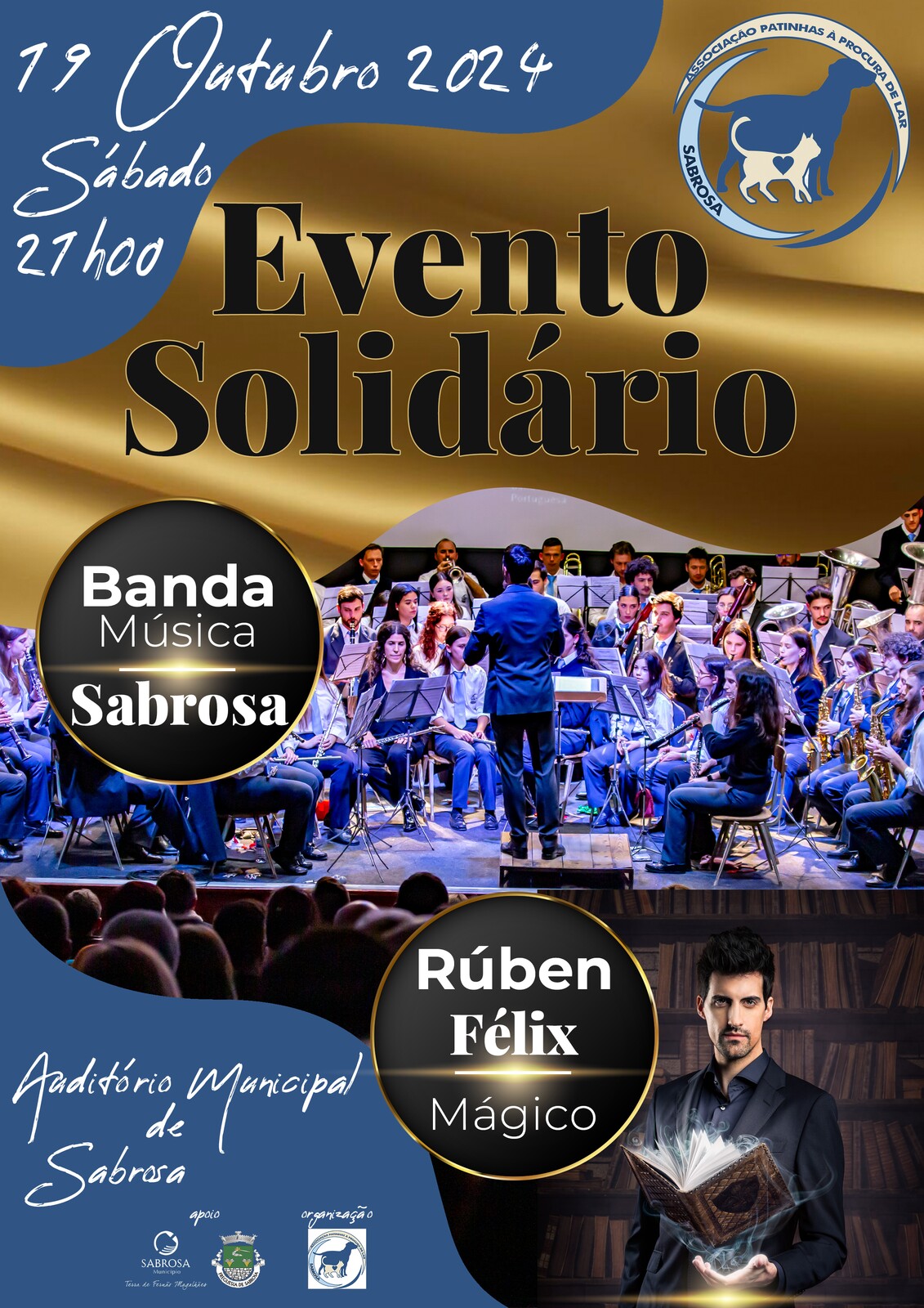 𝟭𝟵 𝗢𝗨𝗧𝗨𝗕𝗥𝗢 (𝟮𝟭𝗛𝟬𝟬) | 𝗘𝗩𝗘𝗡𝗧𝗢 𝗦𝗢𝗟𝗜𝗗𝗔́𝗥𝗜𝗢 | Auditório Municipal de Sabrosa (𝘰𝘳𝘨.: Associação Patinhas à Procura de Lar de Sabrosa com o apoio do município)