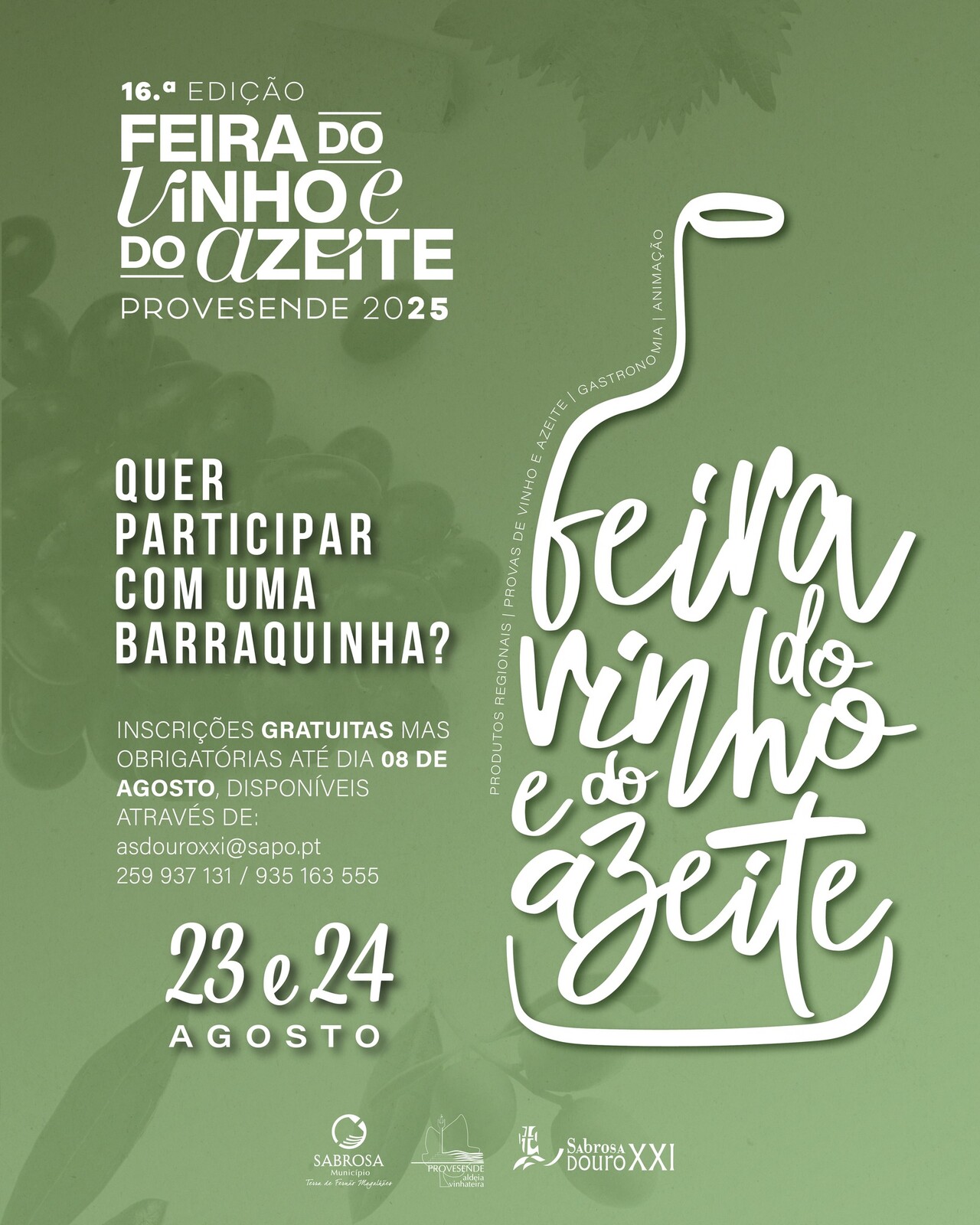 𝟮𝟯 𝗲 𝟮𝟰 𝗔𝗚𝗢𝗦𝗧𝗢 | 𝟣6.ª 𝖤𝖣𝖨𝖢̧𝖠̃𝖮 𝗙𝗘𝗜𝗥𝗔 𝗗𝗢 𝗩𝗜𝗡𝗛𝗢 𝗘 𝗗𝗢 𝗔𝗭𝗘𝗜𝗧𝗘 | Aldeia Vinhateira de Provesende