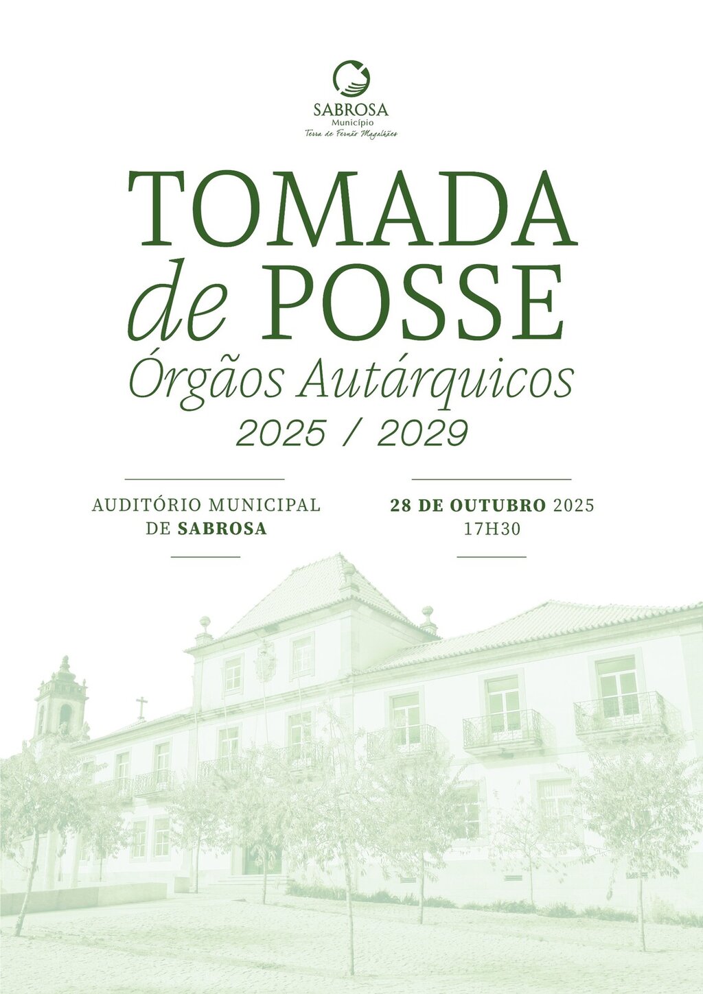 No próximo dia 28 de outubro, pelas 17h30, acontece, no Auditório Municipal de Sabrosa, a 𝖳𝖮𝖬𝖠𝖣𝖠 𝖣𝖤 𝖯𝖮𝖲𝖲𝖤 dos Órgãos Autárquicos 2025/2029.