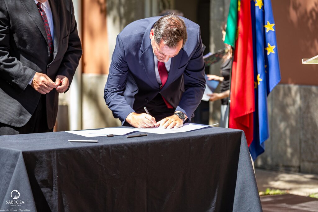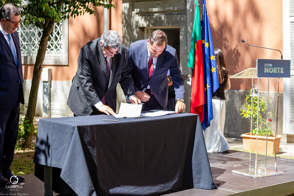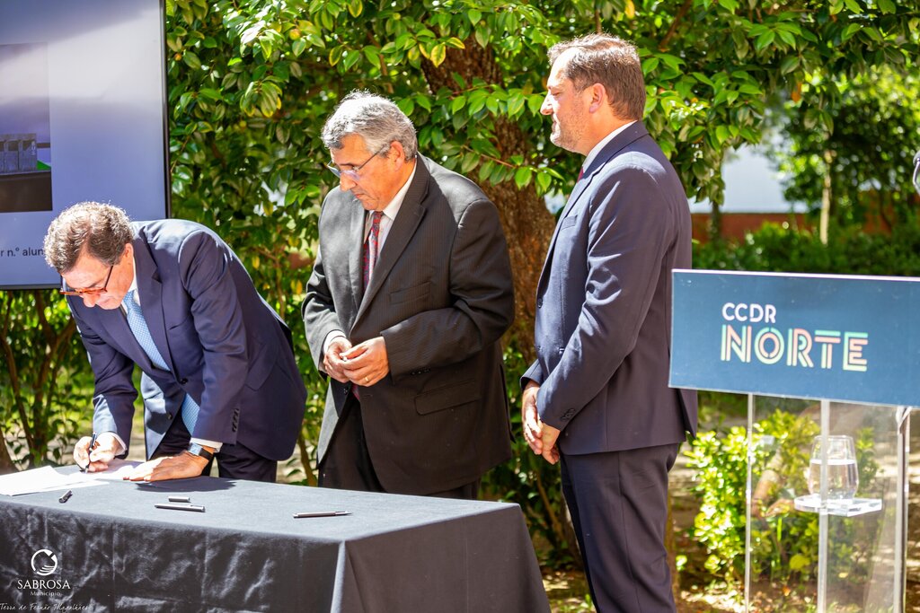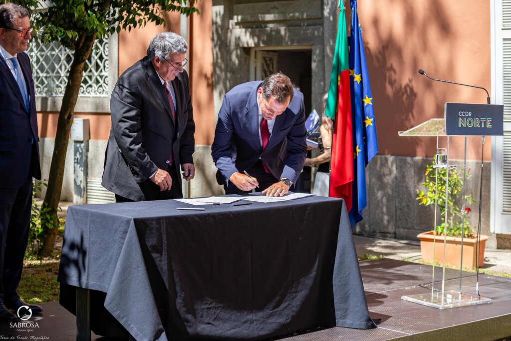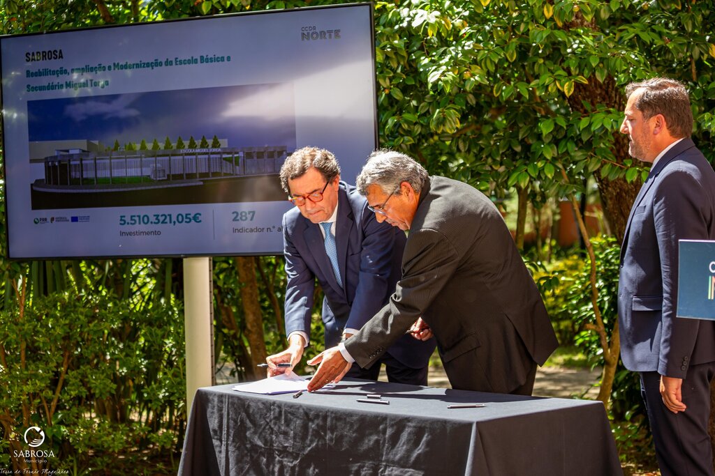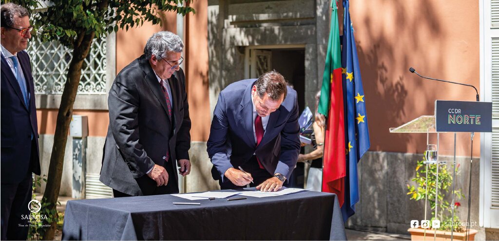 Na assinatura da candidatura aprovada, financiada pelo Plano de Recuperação e Resiliência – PRR, no montante máximo de investimento elegível global de 5 510 321,06 € (cinco milhões, quinhentos e dez mil, trezentos e vinte e um euros e seis cêntimos), esteve presente o Vice-Presidente da Câmara Municipal de Sabrosa, Martinho Gonçalves, o Presidente da CCDR-N, António Cunha, e o Ministro Adjunto e da Coesão Territorial, Manuel Castro Almeida.