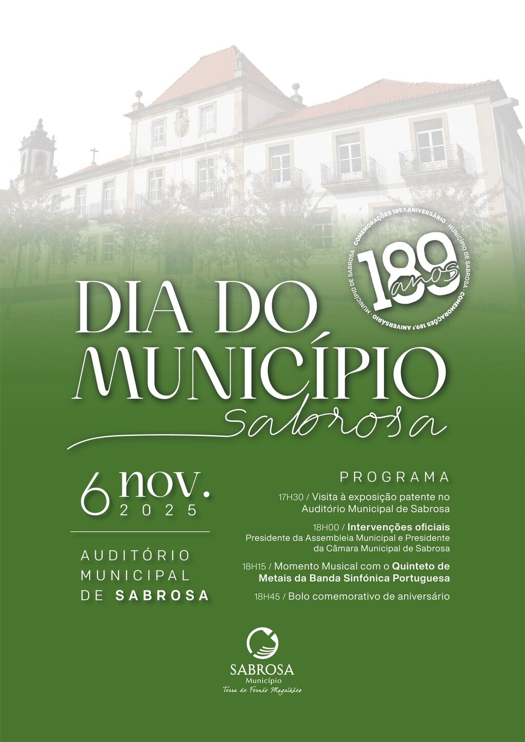 O município celebra, no próximo dia 6 de novembro, o seu 189.º aniversário, e as comemorações terão lugar no Auditório Municipal de Sabrosa.