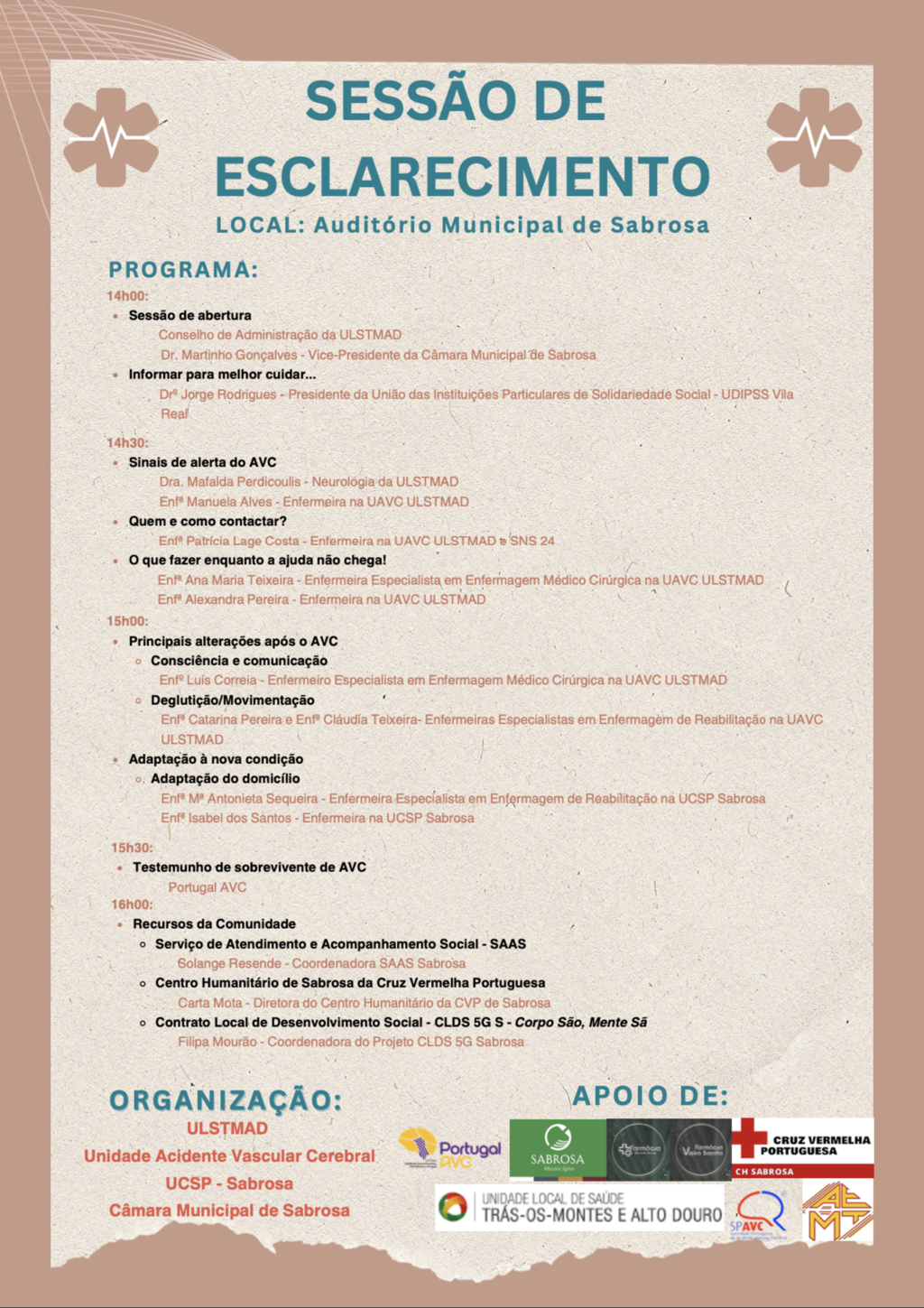 (𝑜𝑟𝑔.: ULSTMAD; Unidade Acidente Vascular Cerebral; UCSP - Sabrosa; Câmara Municipal de Sabrosa)