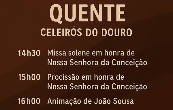 𝟬𝟴 𝗗𝗘𝗭𝗘𝗠𝗕𝗥𝗢 | FESTA DO CHOCOLATE QUENTE | CELEIRÓS DO DOURO (𝘰𝘳𝘨.: Freguesia de Celeirós do Douro com o apoio do município) // 𝘦𝘯𝘵𝘳𝘢𝘥𝘢 𝘭𝘪𝘷𝘳𝘦
