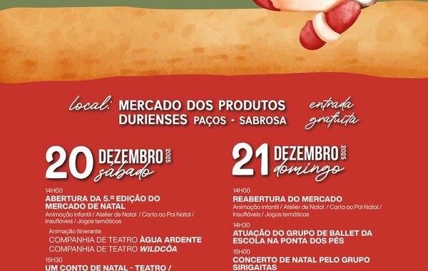 5.ª EDIÇÃO MERCADO DE NATAL data: 20 E 21 DEZEMBRO / local: Mercado dos Produtos Durienses 20 DEZEMBRO21 DEZEMBRO 14H00 - ABERTURA DA 5.ª EDIÇÃO DO MERCADO DE ...