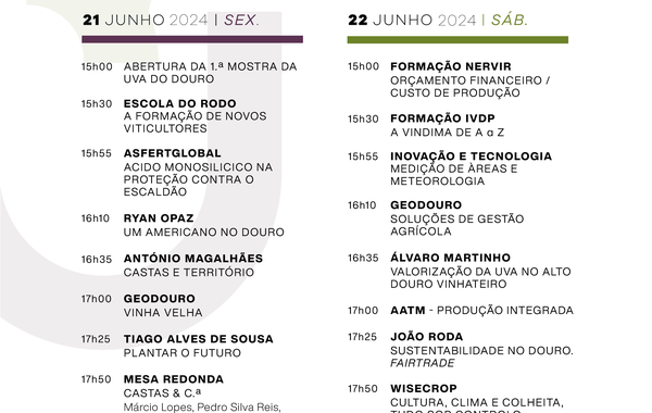 21 E 22 JUNHO | MuD - MOSTRA DA UVA DO DOURO (𝘰𝘳𝘨: Associação Prodouro com o apoio do município) local: Mercado dos Produtos Durienses, Paços - Sabrosa Conheça a programação completa ...