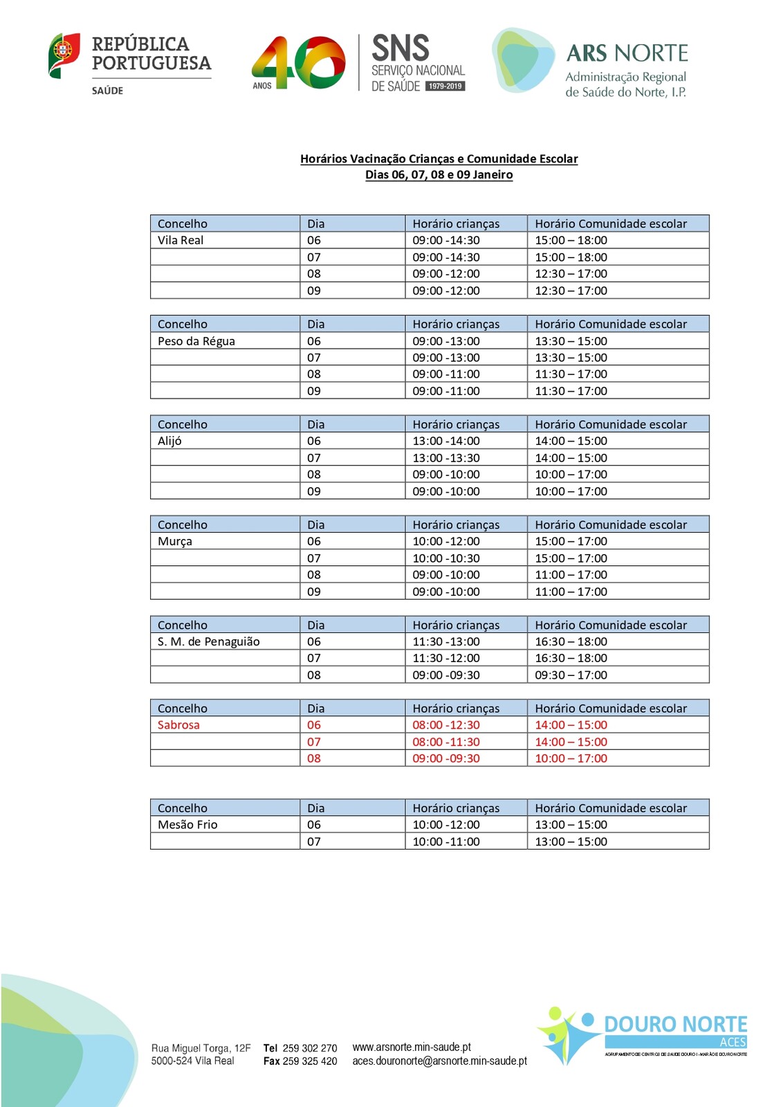 A vacinação de crianças e da comunidade escolar vai decorrer entre os dias 6 e 8 de janeiro de 2022, no centro de Saúde de Sabrosa