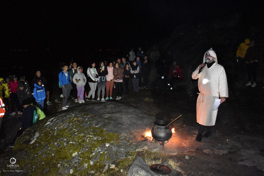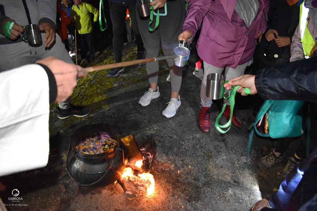 Sempre acompanhados pelas lanternas, à chegada ao miradouro da Fonte dos Mouros, com 812 metros de altitude, todos foram recebidos com música tradicional, à qual se seguiu uma queimada e esconjuro, que foi dada a provar a todos.