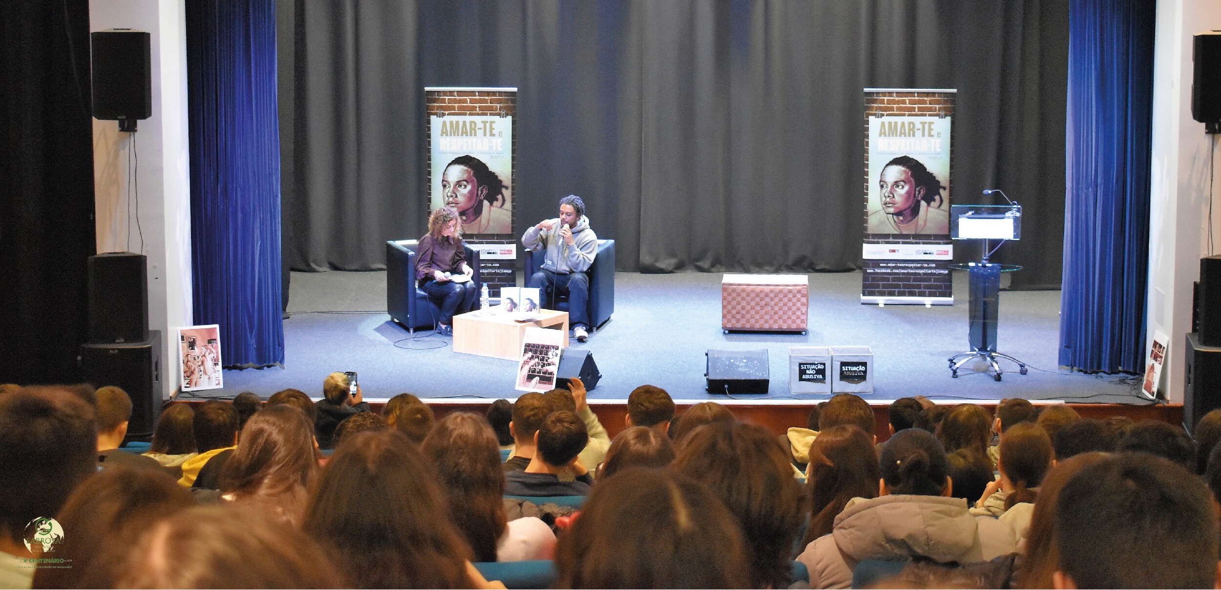 O Auditório Municipal acolheu esta manhã, 13 de dezembro, o Projeto Educativo "Amar-te e Respeitar-te" com a presença de Jimmy P, para os alunos do ensino secundário do Agrupamento de Escolas Miguel Torga.