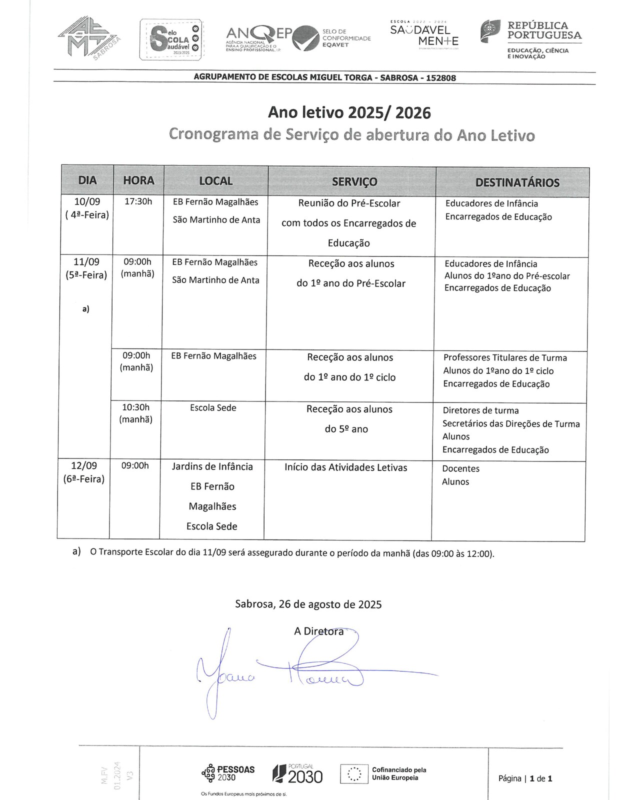 Com o mês de setembro, renova-se a expectativa e a esperança de mais um ano letivo. O Município de Sabrosa, em articulação com o Agrupamento de Escolas Miguel Torga, partilha com a comunidade educativa o calendário definido para o arranque do ano escolar 2025/2026.