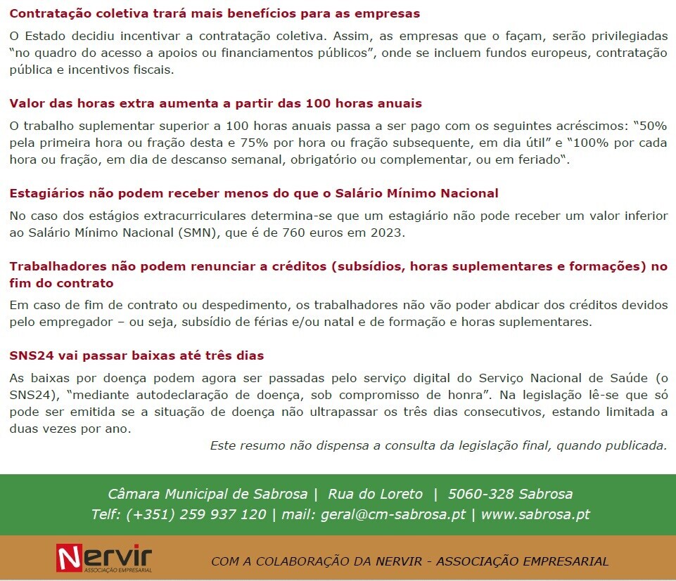 No âmbito da colaboração do Munícipio de Sabrosa com a NERVIR, disponibilizamos informações importantes para a área empresarial :