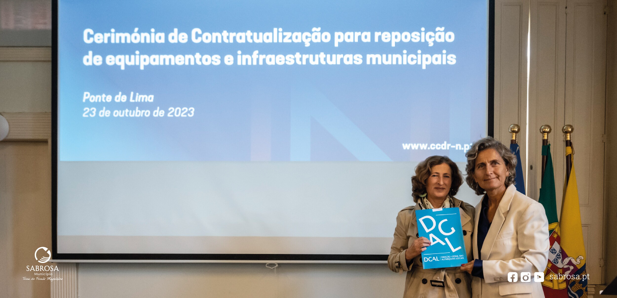 Na cerimónia foram homologados os contratos-programa celebrados, que contemplam apoios financeiros aos municípios afetados pelas intempéries de dezembro de 2022 e/ou janeiro de 2023.