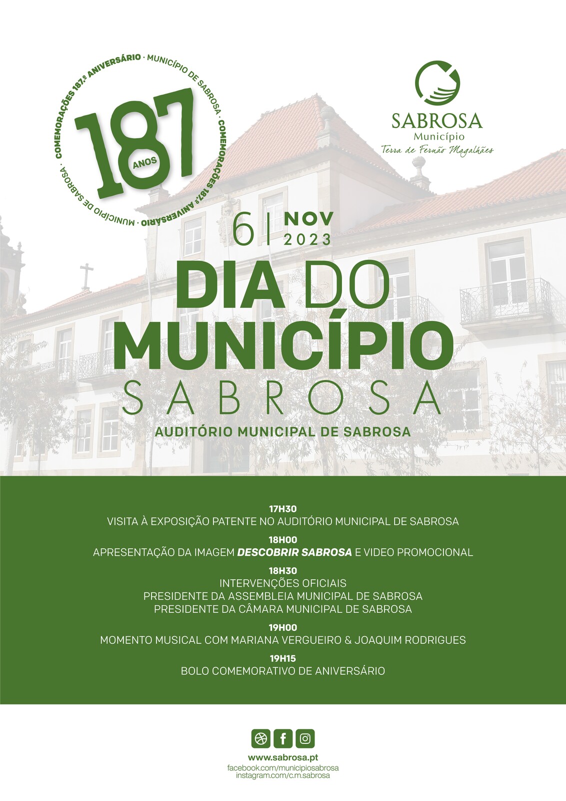 Do programa da cerimónia comemorativa, para a qual toda a população está convidada, constará a visita à exposição patente, seguindo-se a apresentação da imagem “Descobrir Sabrosa” com a visualização do novo vídeo promocional do município.