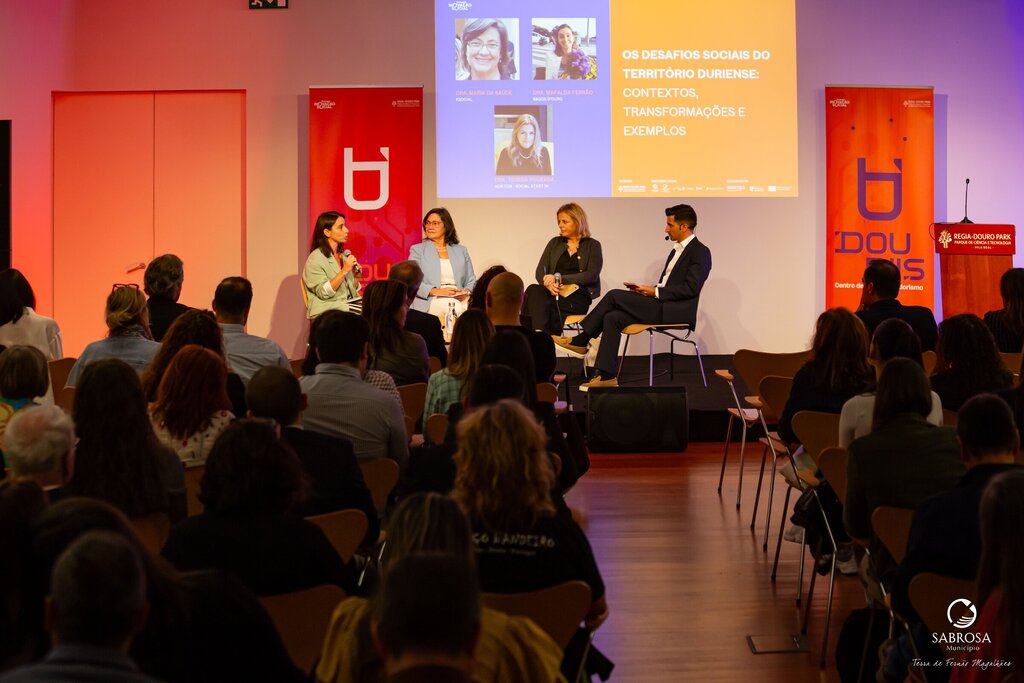 O programa prosseguiu com dois momentos de reflexão e debate, onde o primeiro painel, subordinado ao tema “Os desafios sociais do território duriense: contextos, transformações e exemplos”, contou com as intervenções de Maria da Saúde da KSOCIAL, Tereza Pouzada da ADRITEM / Social Start In e Mafalda Ferrão da Associação Bagos d’Ouro . O segundo painel, intitulado “Agentes de Transformação Social: práticas e visões”, reuniu Martinho Gonçalves, vice-presidente da Câmara Municipal de Sabrosa, Mafalda Mendes, vereadora do Município de Alijó, Francisco Rocha, presidente da Junta de Freguesia de Vila Real, Ana Feijó, em representação da Fundação “la Caixa” e Helena Loureiro, coordenadora nacional da Portugal Inovação Social.