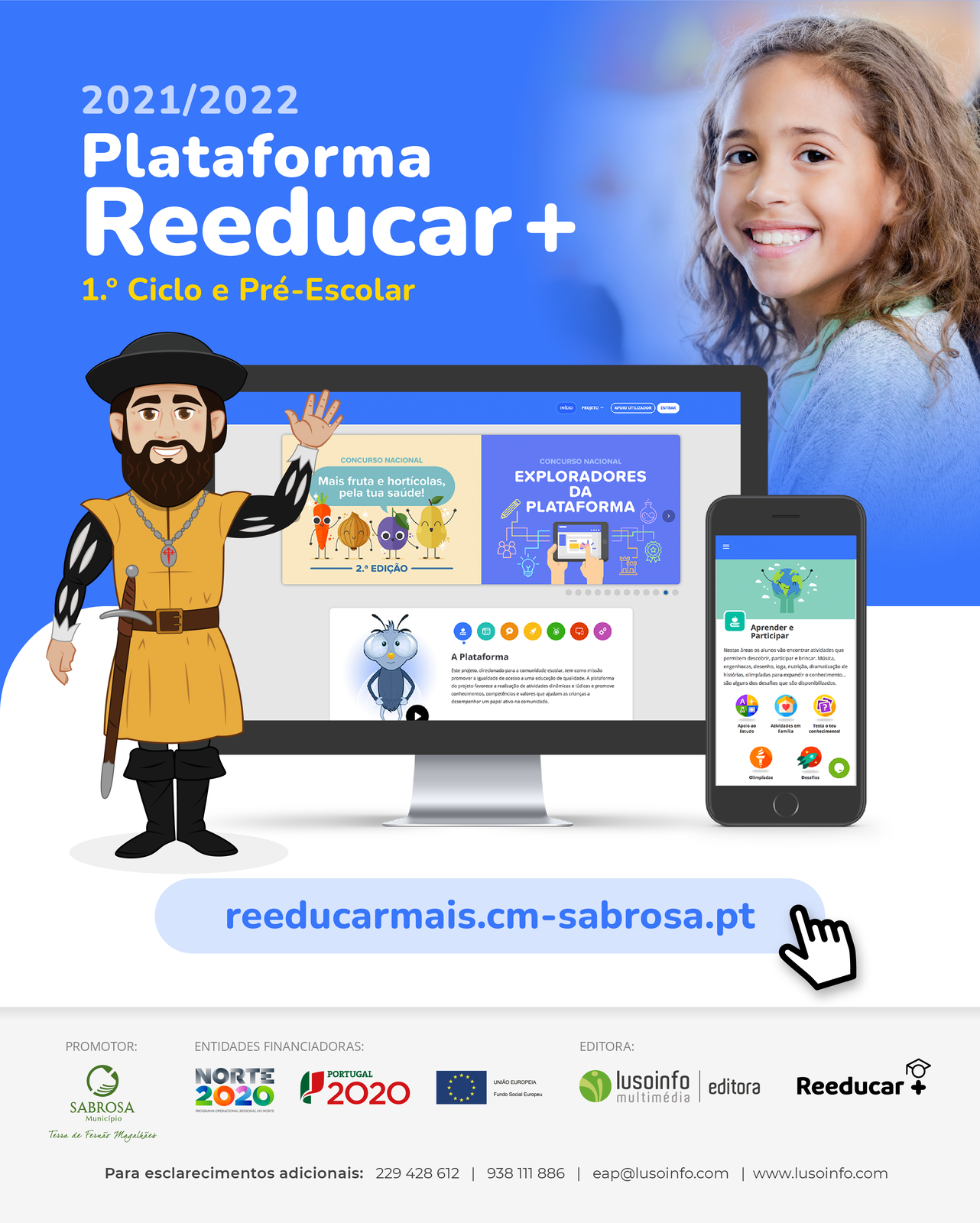 O Município de Sabrosa disponibiliza novamente a Plataforma Projeto Reeducar+ para as crianças da educação pré-escolar e para os alunos do 1.º Ciclo do Agrupamento de Escolas Miguel Torga.