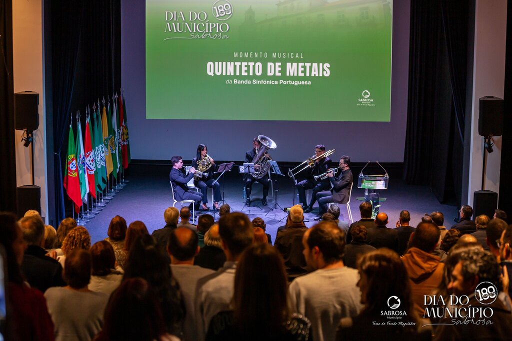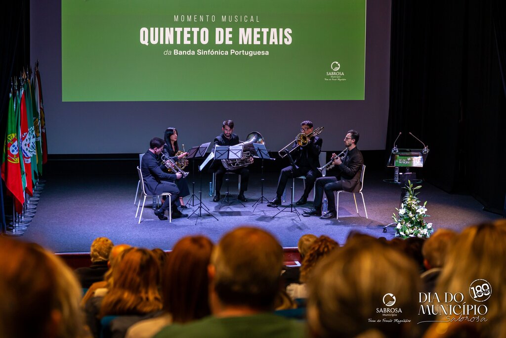 O programa prosseguiu com um momento musical protagonizado pelo Quinteto de Metais da Banda Sinfónica Portuguesa, que encantou os presentes com uma atuação de grande simbolismo, associando a música à celebração da memória e da cultura local.