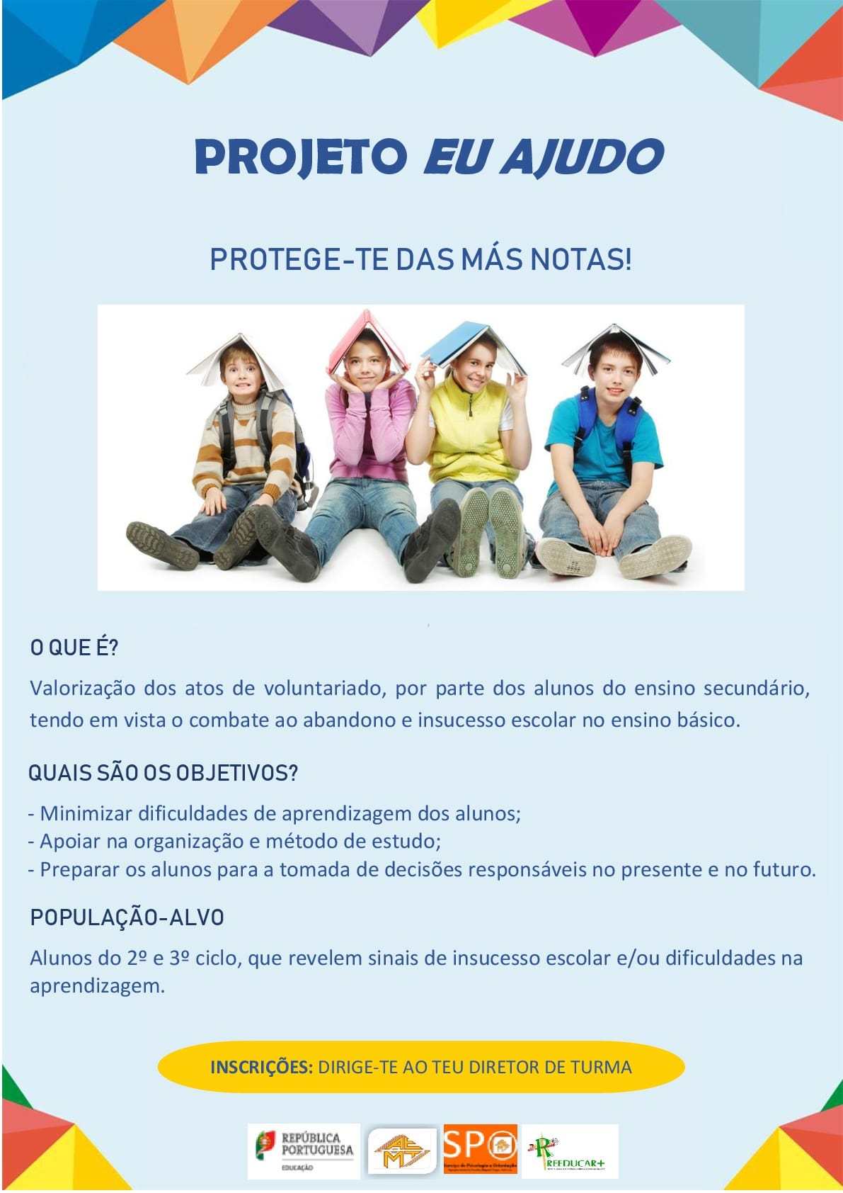 Este projeto, destinado aos alunos do 2º e 3º Ciclos que revelem sinais de insucesso ou abandono escolar e falta de expectativas relativamente à aprendizagem, tem como missão o apoio à comunidade educativa, numa perspetiva de valorização dos atos de voluntariado por parte dos alunos do ensino secundário, tendo em vista o combate ao abandono e insucesso escolar no ensino básico.