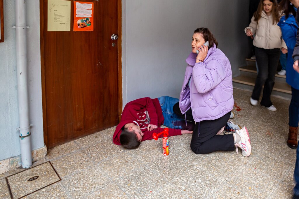 O cenário envolveu um incêndio no edifício do terceiro ciclo, debelado pela equipa de funcionários desse bloco, que deram o alerta para o corpo de bombeiros de Sabrosa e o alerta de evacuação para toda a escola. Durante a simulação um aluno teve um “acidente durante a evacuação”, com uma grave hemorragia no membro inferior direito, que teve a imediata atenção devida.