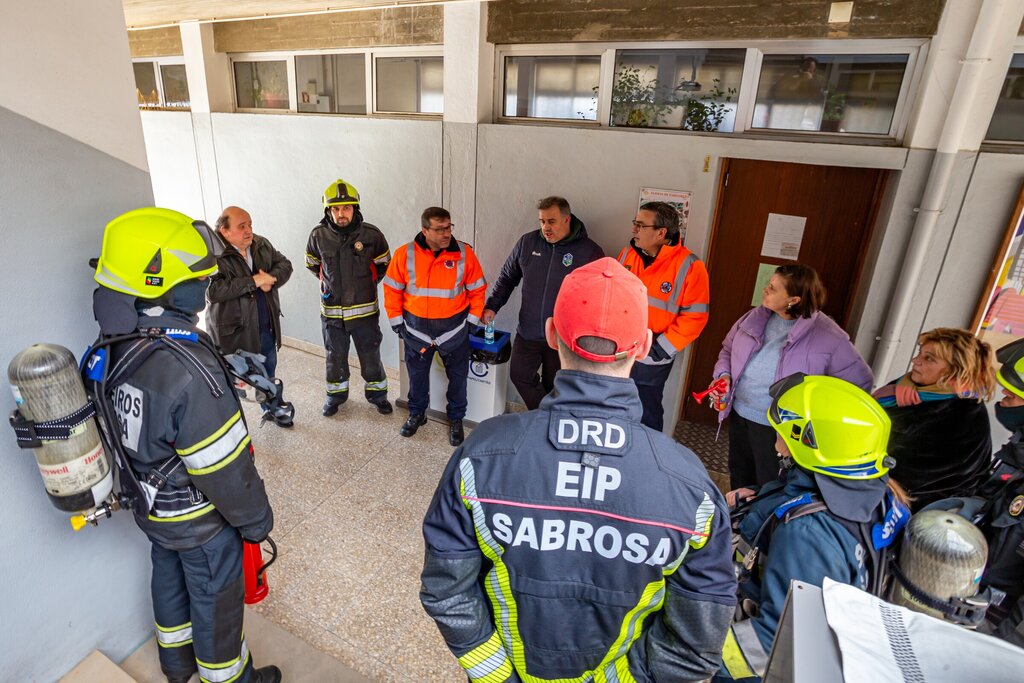 O Vereador do pelouro da Proteção Civil, António Araújo, o Coordenador Municipal de Proteção Civil, Marco Sequeira, o Coordenador de Segurança da Escola, Bruno Ferreira e o Adjunto de Comando dos BV Sabrosa, Jorge Freitas, estiveram como observadores e no final fizeram um briefing de avaliação do mesmo.