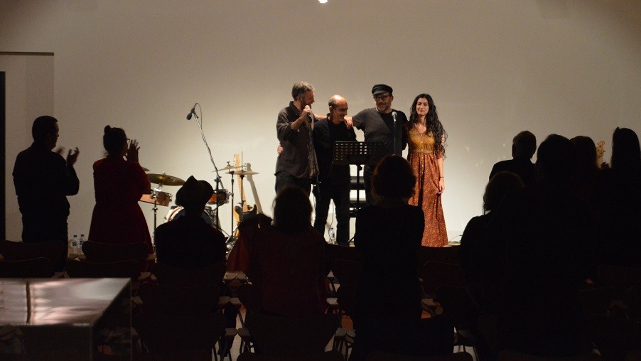 Fabricantes de Pegadas visitou no passado sábado o Espaço Miguel Torga para a mais recente sessão do Solstícios & Equinócios. Este projeto, com Alex Cortez, (Rádio Macau), Filipe Valentim (Rádio Macau), Paula Cortes (todos eles integrantes da Lisbon Poetry Orchestra) e José Anjos, trouxe música e poesia ao auditório do EMT, num concerto que incluiu temas inéditos compostos para poemas de Sophia de Mello Breyner, Jorge de Sena, Charles Bukoswky e Miguel Torga.