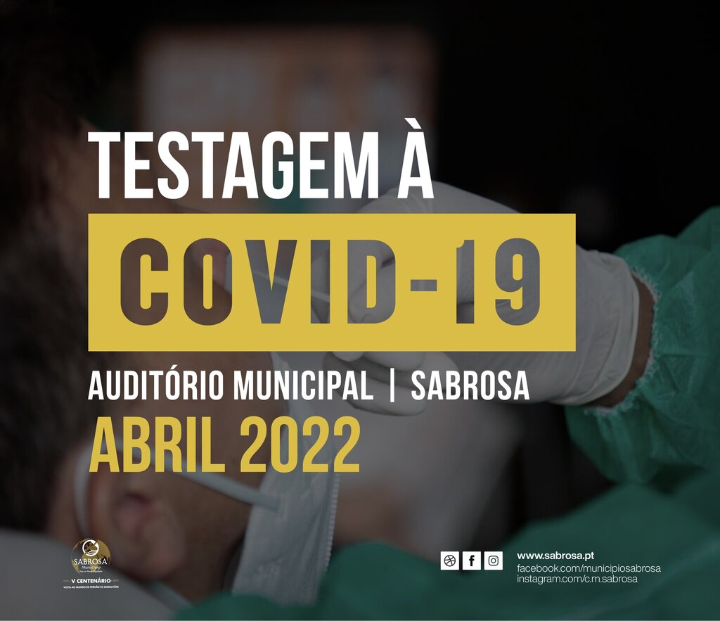Durante o presente mês de Abril o Município de Sabrosa continuará a dispor do centro de testagem à COVID-19 no Auditório Municipal de Sabrosa, somente uma vez por semana, todas as terças-feiras das 16h00 às 18h00.