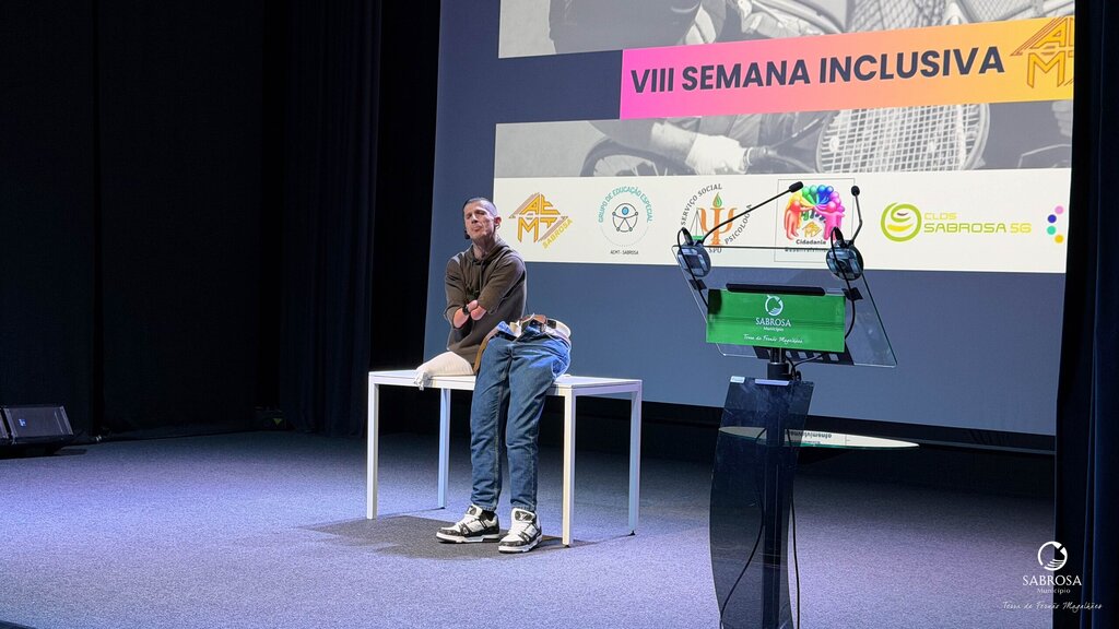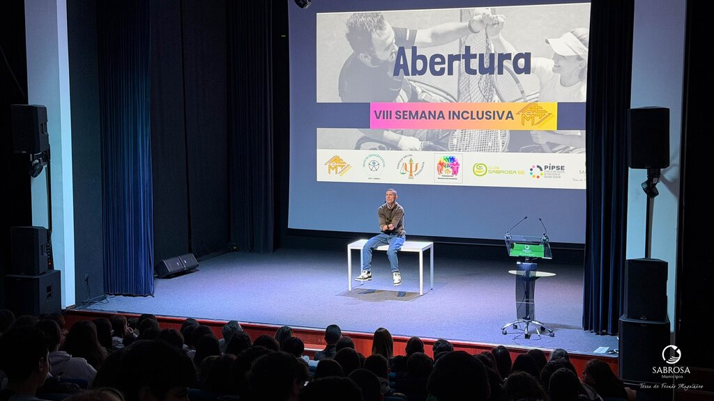 A VIII Semana Inclusiva do Agrupamento de Escolas Miguel Torga abriu oficialmente na manhã do dia de ontem com uma inspiradora palestra conduzida por Paulo Azevedo, ator, orador, palestrante e autor, que encheu o auditório com uma mensagem de superação, resiliência e igualdade de oportunidades.