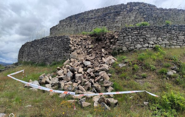 Derrocada de muro da muralha exterior do Castro de Sabrosa