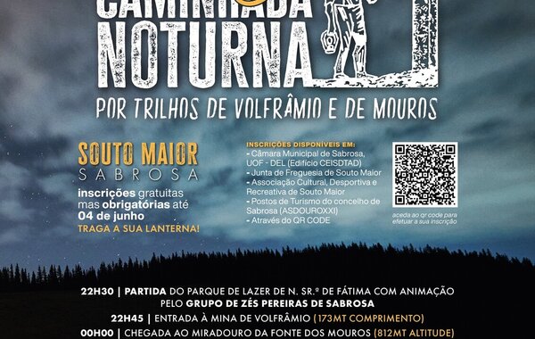 A terceira edição da Caminhada Noturna Por Trilhos de Volfrâmio e de Mouros regressa a Souto Maior no próximo dia 9 de junho, ...