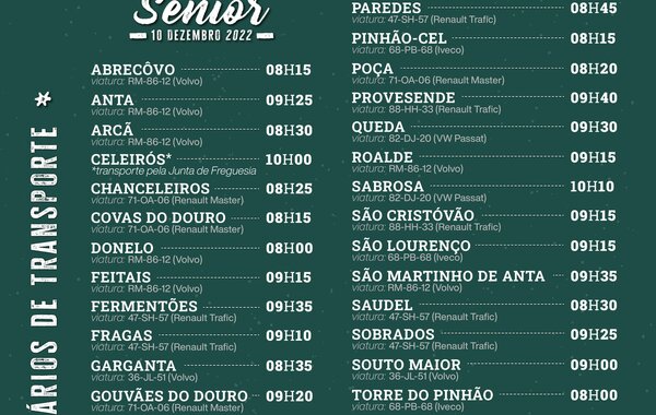 Avisam-se todas as pessoas que no ato de inscrição para a Festa de Natal Sénior solicitaram transporte, o mesmo será realizado ...