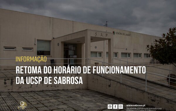 Retoma do horário de funcionamento da UCSP de Sabrosa A partir da próxima segunda-feira, 4 de abril, o horário de ...